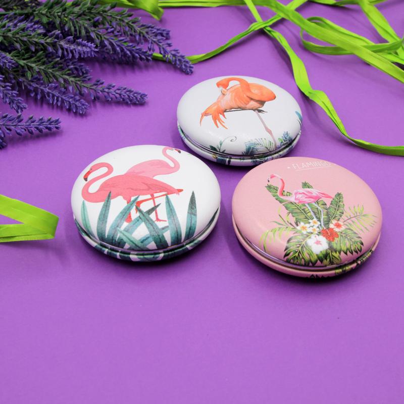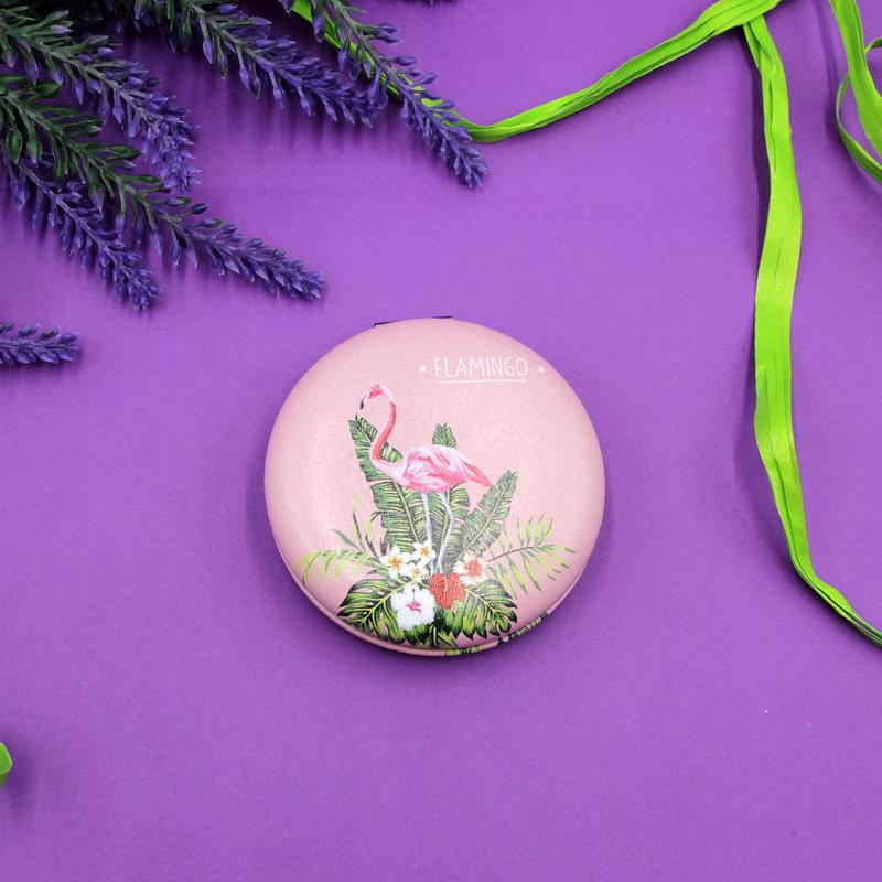 Круглое карманное зеркало женское/детское, косметическое зеркало Фламинго