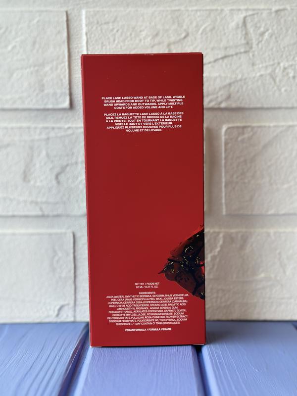 LASH LASSO — це густа туш, яка додає миттєвої драматичності. Щільно розташована, вигнута насадка-щіточка у вигляді пісочного годинника покриває вії чорним пігментом за допомогою фірмової технології — суміші м’яких восків і загусників, які підкреслюють навіть найтонші, прямі вії. Віск Proberry з китайського лакового дерева зберігає вії м’якими, пухнастими та приємними на дотик до 16 годин.