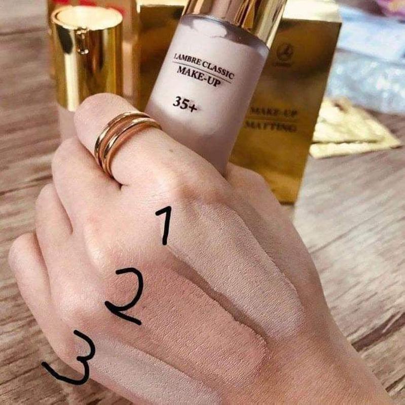 Тому в колекції Lambre є формула MAKE UP GOLD 35+ – тональна основа з ліфтинг-ефектом, яка легко розподіляється по шкірі і робить її гладкою і підтягнутою. Інноваційна формула тональної основи з силіконовими частками дозволяє пристосовуватися до міміки особи, завдяки чому тональна основа не накопичується в зморшках, дозволяючи шкірі вільно дихати. Ніжна, легка кремова консистенція рівномірно розподіляється по поверхні шкіри, протягом п'яти хвилин адаптуючись до вашого природного відтінку.