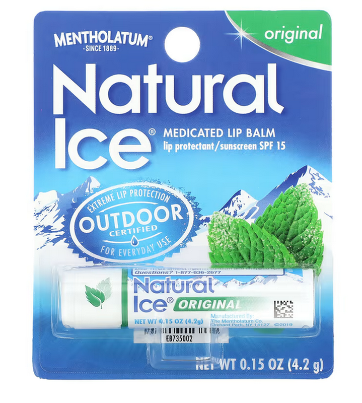 Mentholatum, natural ice, лікувальний бальзам для губ, spf 15, 4,2 г