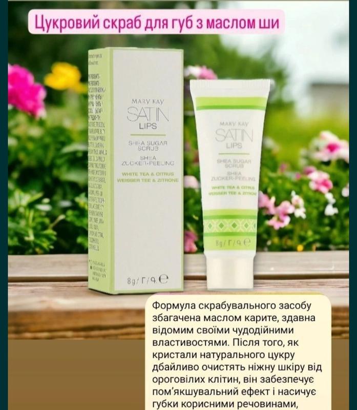 Цукровий скраб з маслом Ши -відлущує таефективно видаляє ороговілі клітини верхнього шару шкіри, завдяки чому губи виглядають доглянутими, м'якими та еластичними. Об'єм 8 г.