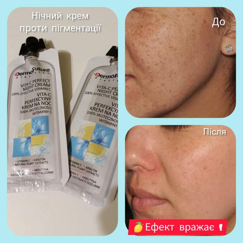 Нічний крем DermoFuture збагачений вітаміном С, завдяки чому він уповільнює синтез меланіну, в такий спосіб освітлюючи шкіру.