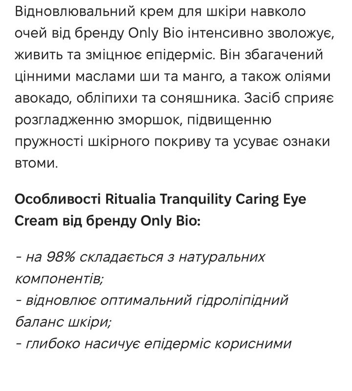 Натуральний крем під очі Only Bio з маслом авокадо, манго, обліпихи та інш. Виробництво Польща, замовляла з польського інтернет магазину. Строк придатності до 25.11.2025 року. Без однієї спроби лопаткою. Глибоко живить шкіру навколо очей. Для мене занадто жирний, люблю більш легкі текстури.