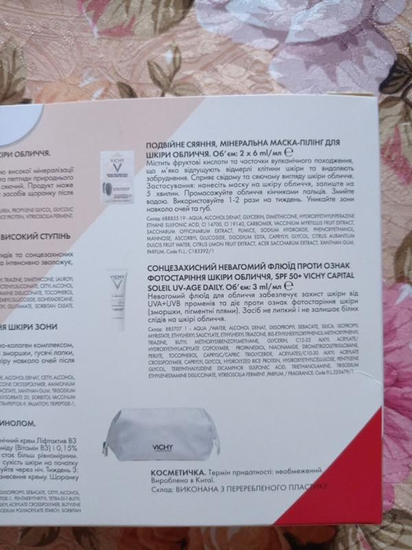 Мінеральна маска-пілінг для обличчя, 2*6 мл. Вона містить фруктові кислоти та вулканічні частинки, що м’яко відлущують відмерлі клітини та очищають шкіру, повертаючи їй свіжість і сяяння.