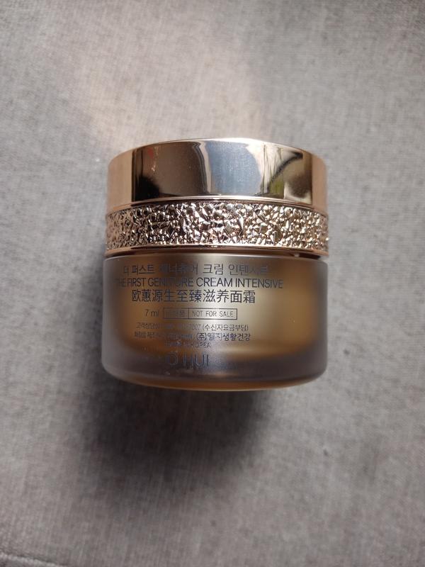Крем O Hui The First Geniture Cream Intensive призначений для інтенсивного відновлення втомленої шкіри обличчя, що в'яне. Стовбурові клітини сприяють регенерації клітин, пришвидшують вироблення колагену, підвищують опірність дерми негативному впливу ультрафіолетового випромінювання та інших негативних чинників зовнішнього середовища, вибілюють пігментні плями, ідеально вирівнюють тон, підвищують пружність і еластичність. Олії ши та макадамії живлять, пом'якшують, усувають лущення, загоюють дрібні садна та тріщини. Засіб має кремоподібну консистенцію, легко розподіляється епідермісом, не забиває пори та не залишає жирного блиску. У разі регулярного застосування крему поліпшується тонус, видаляється тьмяність і землистий колір обличчя. Шкірний покрив набуває молодості та сяйливого кольору