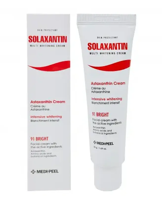 Антиоксидантний крем Solaxantin Multi Whitening Cream розроблений для ретельного щоденного догляду за чутливою дермою, схильною до появи слідів постакне та пігментних плям. Препарат активно відновлює тон та мікрорельєф епітелію, насичує вологою, вітамінами, мікро та макроелементами, попереджає фотостаріння епідерми.