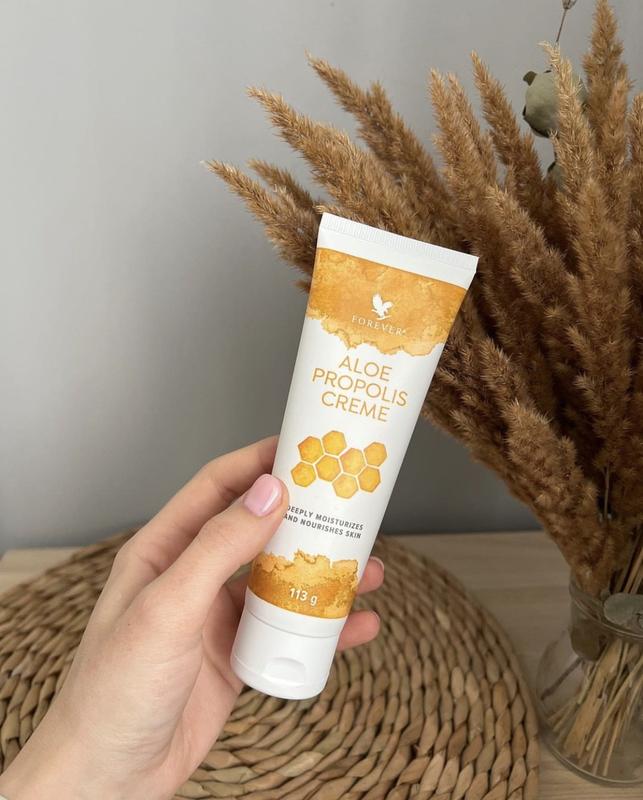 На Весну захистить та зволожить вашу шкіру .Цілюща суміш гелю Алоє вера та бджолиного прополісу дає вашій шкірі значно більше ніж просто зволоження крему кондиціювання .До складу крему додані найкращі в природі лікарські трави ромашку та огірочник лікарській також вітаміни А і Е. Ніжний аромат текстура та цілющі властивості крему зроблять його вашим улюбленим косметичним продуктом 113 грм
