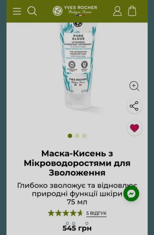 Киснева зволожувальна маска для обличчя на основі мікроводоростей від Ів Роше. 75 мл.Рекомендації щодо догляду та терміни — на фото.Залишилася 1 штука