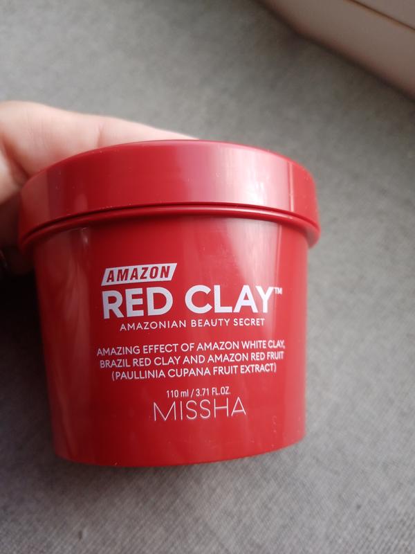 Маска для обличчя на основі червоної глини MISSHA Amazon Red Clay Pore Mask створена на основі білої амазонської глини, червоної бразильської глини, екстракту гуарани. Завдяки великій кількості мінералів у складі ця глина надає відлущувальну дію, а також покращує мікроциркуляцію крові. Використовуючи глиняну маску, ви зможете легко повернути сяйво шкірі, вирівняти її рельєф і тон. Регулярне нанесення дозволить вам забути про забиті пори і лущення. Крім того, така маска допоможе впоратися з почервонінням шкіри і вуграми, її особливо рекомендують використовувати для вирішення проблем жирної і вікової шкіри.