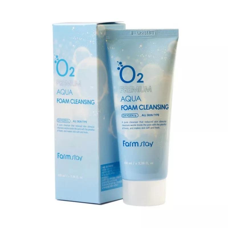 Кислородная пенка для умывания Farmstay O2 Premium Aqua Subside Cleansing - нежная освежающая пенка предназначена для деликатного очищения кожи: смывает с лица повседневные загрязнения, остатки косметики, излишки кожного жира, способствует отшелушиванию омертвевших клеток кожи, а также растворяет сальные пробки в порах.