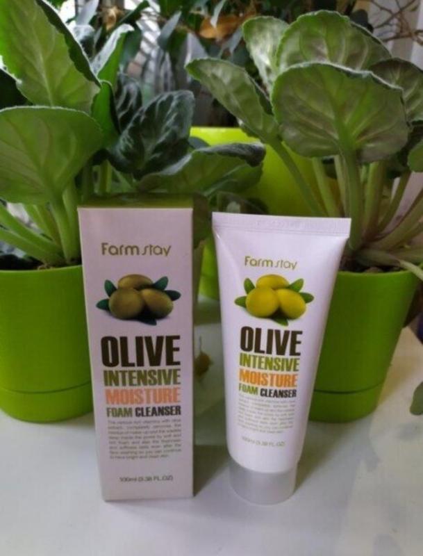 Опис очищаюча Пінка з екстрактом оливи зволожуюча Зволожуюча пінка з екстрактом оливи від корейського бренду FarmStay — м'який засіб для вмивання і зняття залишків макіяжу, яке не сушить шкіру і не залишає неприємного відчуття стягнутості. Завдяки вмісту екстракту оливи, масла ши і гіалуронової кислоти пінка насичує клітини вологою, пом'якшує шкіру і зменшує глибину зморшок. Аденозин м'яко відлущує ороговілі частинки, тим самим досягаючи ефекту вирівнювання тону і текстури особи, а алое віра надає антибактеріальну і протизапальну дію. Кремообразная консистенция продукта при взаимодействии с водой образует облако густой микроскопической пены, которая дарит коже восхитительную чистоту и мягкость. Особенности FarmStay Olive Intensive Moisture Foam Cleanser: - глубоко очищает кожу от загрязнений, избытков себума, ороговевших клеток и остатков косметики; - «запечатывает» влагу в клетках; - устраняет сухость и шелушения; - успокаивает воспаления и раздражения; - уменьшает проявления угревой сыпи; - стимулирует выработку собственного коллагена и эластина; - повышает упругость; - сокращает глубину морщин; - стимулирует процессы регенерации; - повышает сопротивляемость кожи солнцу, ветру и морозу. Способ применения: выдавите необходимое количество средства на ладонь, добавьте небольшое количество воды, вспеньте руками или с помощью сеточки, нанесите полученную пену на лицо и распределите ее легкими круговыми движениями. Смойте прохладной водой.