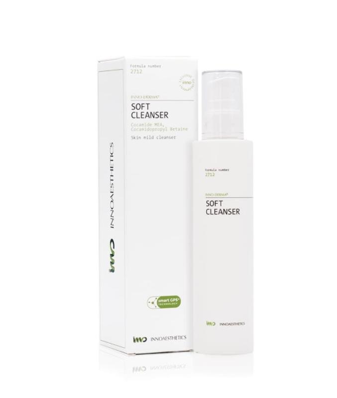 М'який очищувач Innoaesthetics Inno-Derma Soft Cleanser - пінисте мило, призначене для очищення всіх типів шкіри, у тому числі чутливої, перед косметологічною процедурою. Він усуває шкірний жир і бруд завдяки поверхнево-активним агентам , які діють як сполучна ланка між молекулами води і частинками бруду. Препарат видаляє забруднення і очищує шкіру. Він діє як себорегулятор, не викликаючи пошкодження поверхневого шару і не пересушує шкіру, а зберігаючи її гідроліпідний баланс. В результаті шкіра стає чистою і свіжою.