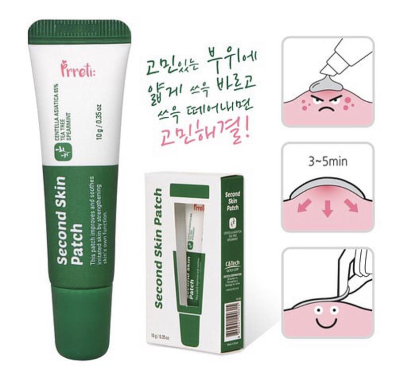 Дуже цікава новинка працює для всіх власниць проблемної шкіри! Prreti Second Skin Patch - це унікальний рідкий патч для боротьби із запаленнями і лікуванням шкіри. Так само він послужить ідеальною вирівнюючої плівковою базою під макіяж. Тоненька, як друга шкіра плівка, яка повністю покриває проблемні ділянки шкіри з запаленнями і розширеними порами і надає лікувальний ефект. Може використовуватися на ніч самостійно як лікувальний засіб, так і вдень під макіяж. Увага! Здоровій шкірі засіб абсолютно не потрібно, якщо висипання поодинокі-наносите рідкий патч точково, тільки на прищик. Большинство из нас уже знакомы с прекрасно работающими корейскими круглыми пластырями на прыщики, они идеальны для единичных воспалений, но что делать если высыпаний много? Клеить на лицо 20 кругляшков? Плюс они довольно толстые и заметные днем. Жидкий патч придет на помощь) Если толщина обычного пластыря от прыщей составляет 0,4 мм и он имеет четкие края, то пленочный жидкий патч в среднем имеет толщину 0,05 мм и края его, естественно, сглажены. Эта пленка будет абсолютно незаметна под любым тональным средством+ она позволяет коже дышать и очень бережно и быстро залечивает любые неприятности.