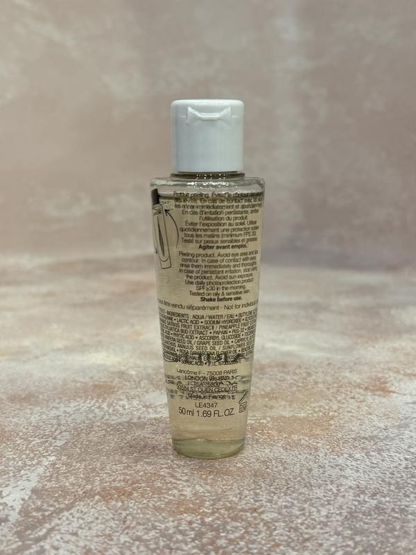 Ця есенція діє як праймер для догляду за шкірою та поєднує чотири відлущувальні кислоти та зволожуючі олії для покращення текстури та тонусу шкіри. Ця формула на 96 відсотків натурального походження поєднує воду та олію у двох ключових фазах. Перша фаза відлущує та помітно освітлює, а друга фаза заспокоює та зволожує шкіру.