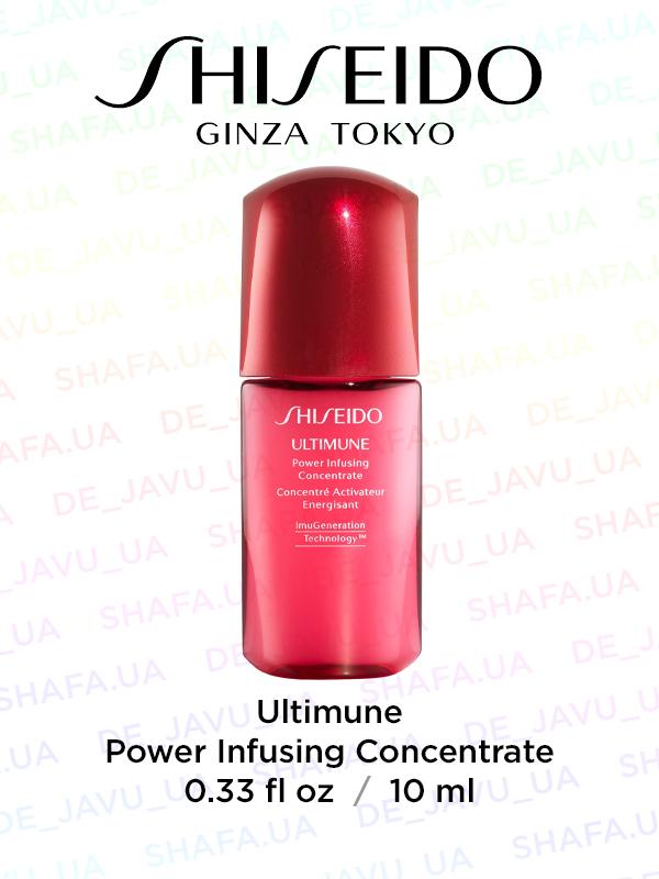 Оригінал. Без упаковки, не відкривалась. Термін придатності червень 2027 року (дві тисячі двадцять сьомого) року Об'єм 10 мл Концентрат для обличчя Ultimune Power Infusing забезпечує омолодження, зволоження та природне сяйво шкіри. Продукт японського бренду Shiseido завдяки технології ImuGenerationRedTM забезпечує внутрішній захист шкіри для її пружності, шовковистості та сяйва. Не містить парабенів та мінеральних масел. Переваги продукту: - зменшує ознаки старіння шкіри, - має зволожуючі властивості, - надає шкірі природного сяйва, - посилює ефективність інших засобів, - не викликає утворення висипів. Засіб протестований дерматологами. Ферментований екстракт розелі допомагає шкірі утримувати вологу, а також запобігає руйнуванню еластину для надання шовковистості та сяйва. Екстракт стародавньої східної трави Heartleaf заспокоює шкіру та зміцнює захисний бар'єр, сприяє виведенню токсинів та допомагає насичувати киснем. Гриб рейші, збагачений антиоксидантами та полісахаридами, має зволожуючі та захисні властивості для зменшення ознак старіння шкіри. Екстракт кореня ірису надає енергії та зволожує.