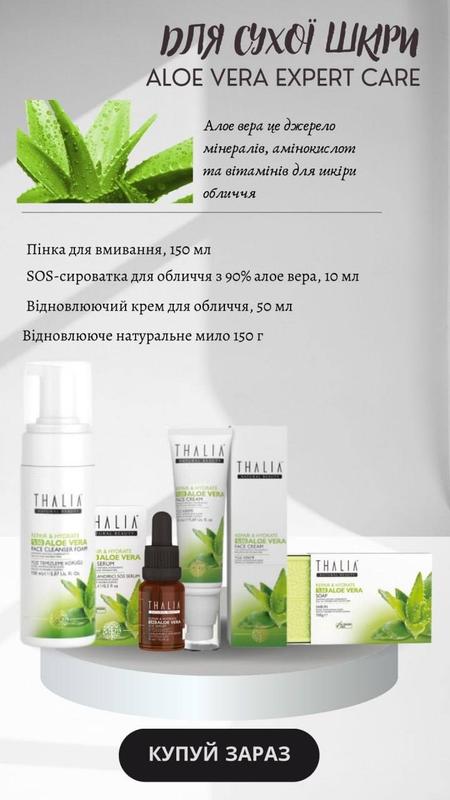 Догляд з вмістом натурального соку алое вера відмінно живить, відновлює шкіру, зупиняє процеси старіння.