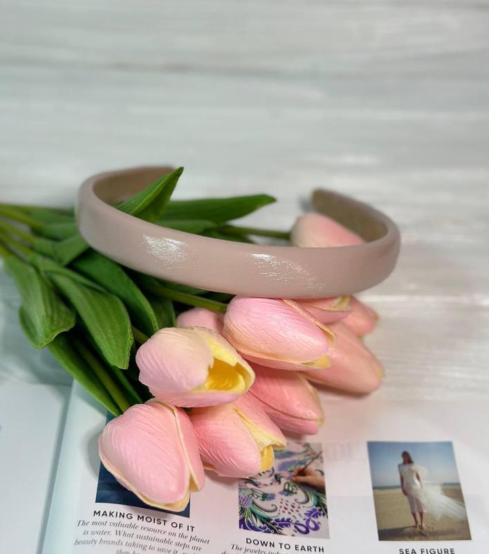 Обруч для волосся з лаковою екошкірою жіночий ободок колір пудра (2 см)