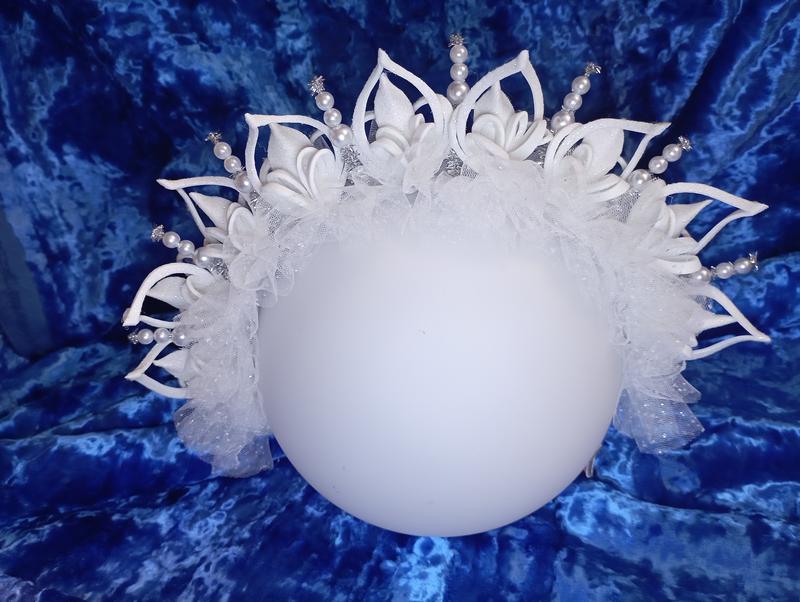 Новорічний обідок сніжинка з фоамірану,сінельного дроту,намистиною та фатину.