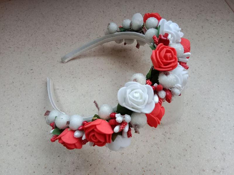 Обруч\вінок з фоамерановими квітами ручної роботи, арт ло-0071