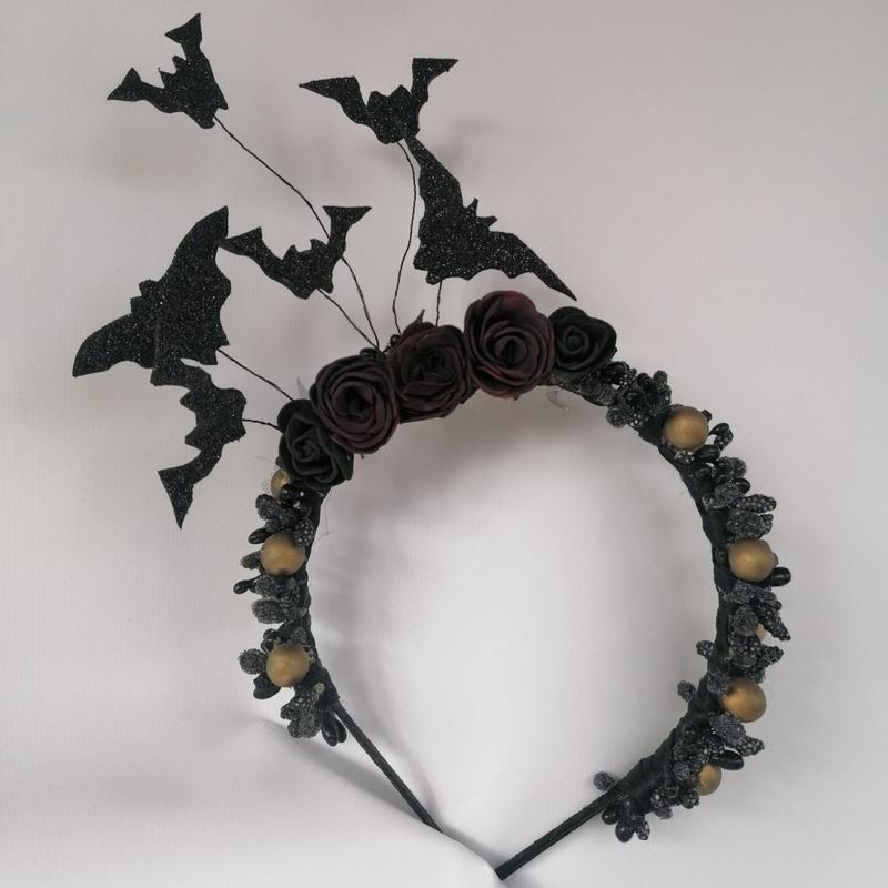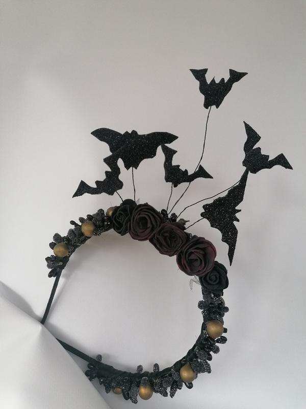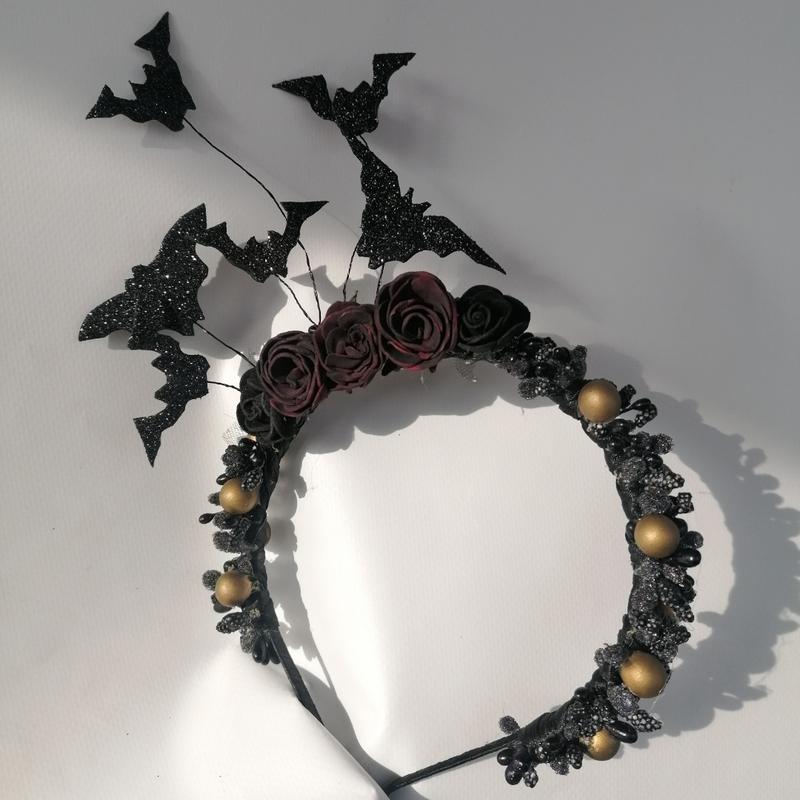 Обруч летюча миша. Оригінальний Обідок з трояндами і летючими мишами. Підкреслить ваш образ. Ручна робота.