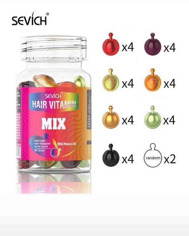 Вітамінні капсули для волосся Sevich Hair Vitamin Mix містять у баночці мікс із 7 видів капсул, 30 капсул, кожен із яких розв'язує певну проблему.