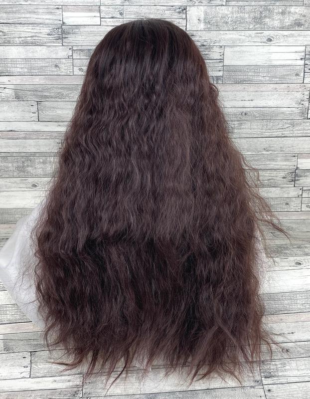 Парик волнистый гофре с челкой темно-коричневый длинный женский 70см