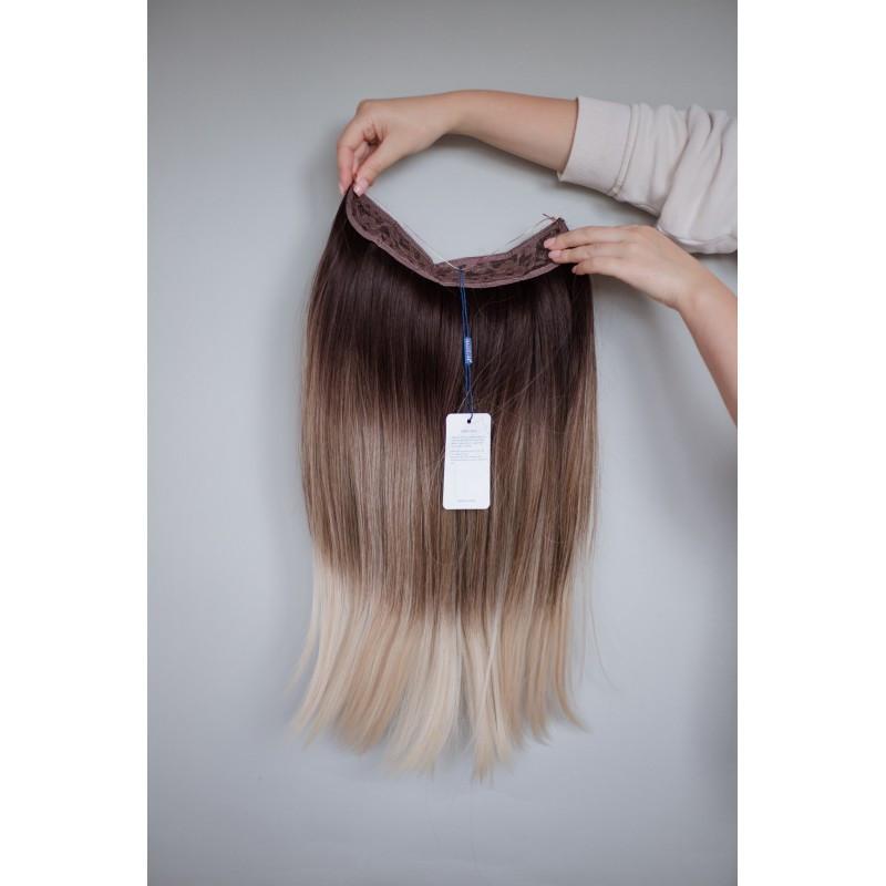 Рівна одиночна треса холодна руса з темним корінням та світлими кінчиками на