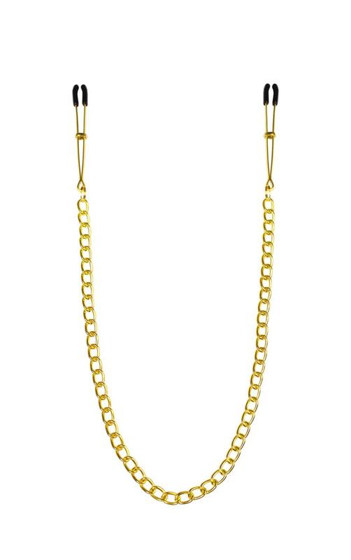 Тонкі затискачі для сосків з ланцюжком feral feelings - chain thin nipple clamps, золото/ч...