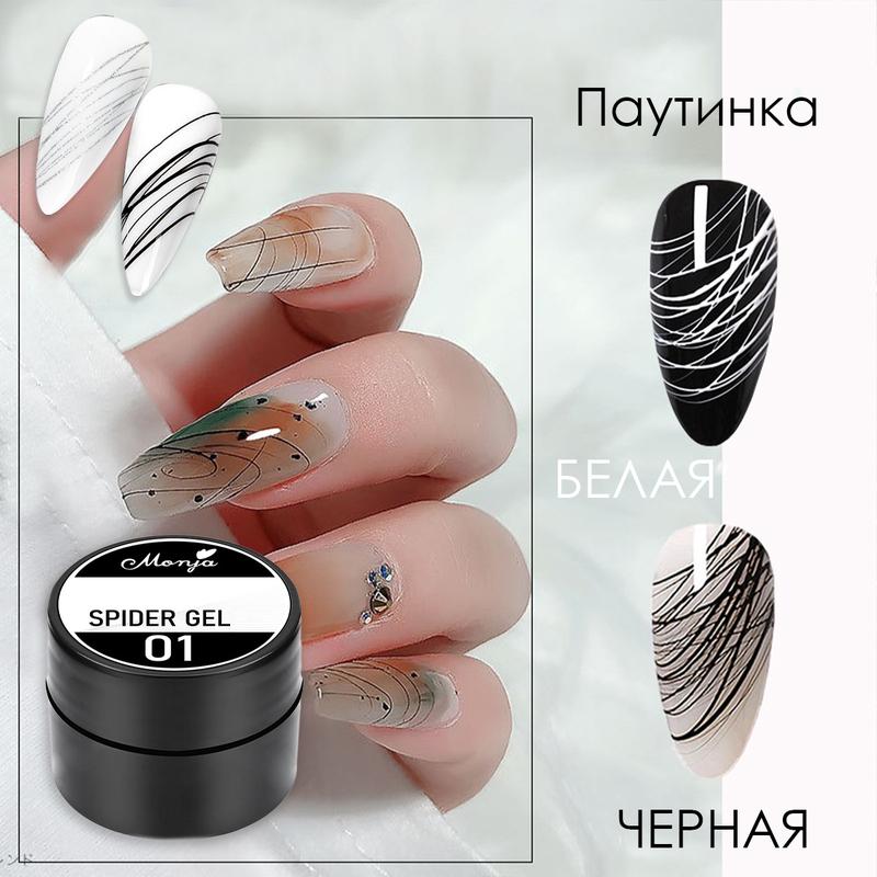 Гель-павутинка дозволяє створити унікальний малюнок на поверхні нігтя. До складу входить максимально насичена пігментами гель-фарба та липка, тягуча смола. За допомогою павутинки можна створити рівний малюнок, навіть не маючи здібностей до малювання.