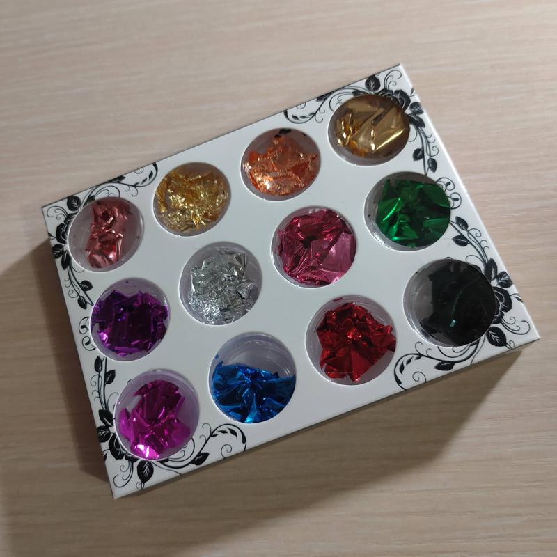 Набір кольорової поталі у прозорих баночках. У наборі 12 кольорів.