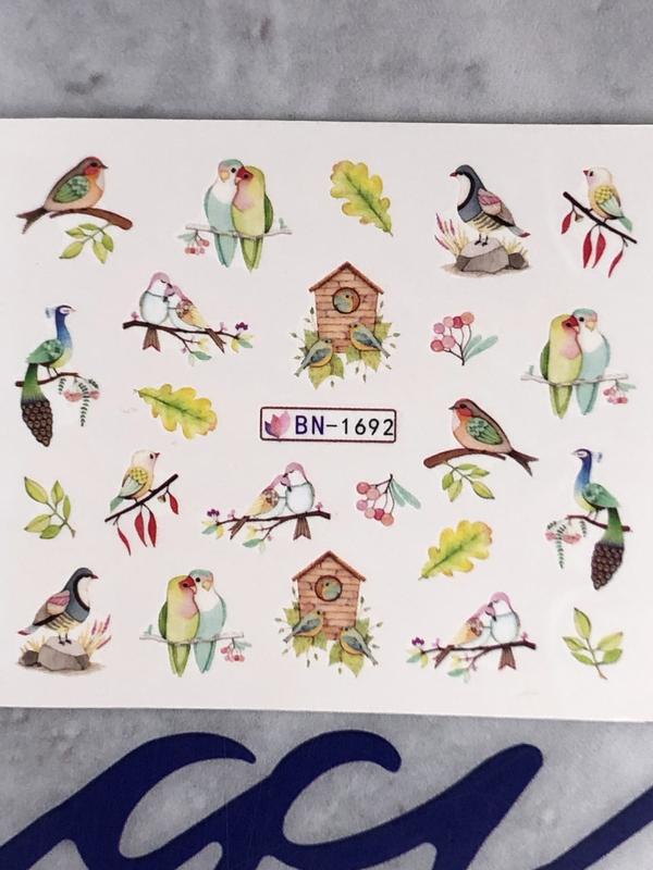 Наклейки на нігті декор для нігтів манікюру водні слайдери наліпки з пташками синички...