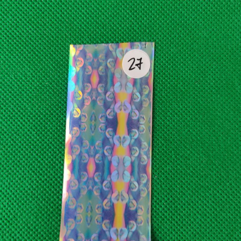 Фольга для дизайну нігтів. Добре перебивається на гель лак з липким шаром або спеціальний клей для фольги. Для закріплення дизайну зверху необхідно покрити топом. Довжина – 20 см. Ширина – 4 см.