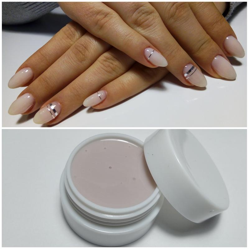 Самовирівнювальний ЛЕД-гель молочного або опалового кольору. На нігтиках має шикарний вигляд. Використовується як самостійне покриття або під гель-лак. Легкий в типі.
