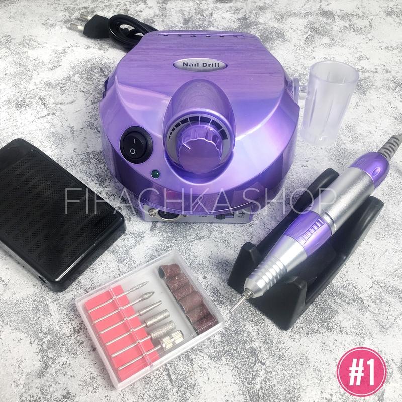 Професійна фрезерна машинка, яка використовується для манікюру та педикюру. Характеристики: - Розміри: 16 см х 13,5 см х 10 см - Довжина ручки: 14 см - Напруга: 220 - 240 В - Потужність: 65 Вт - Кількість обертів/хв: 45000 - Реверс: є Комплектація: 1. блок живлення у корпусі; 2. ручка-двигун; 3. 2 підставки для ручки: горизонтальна та вертикальна; 4. педаль ножна; 5. набір насадок - алмазні фрези та ковпачки для педикюру. Гарантія - 6 міс