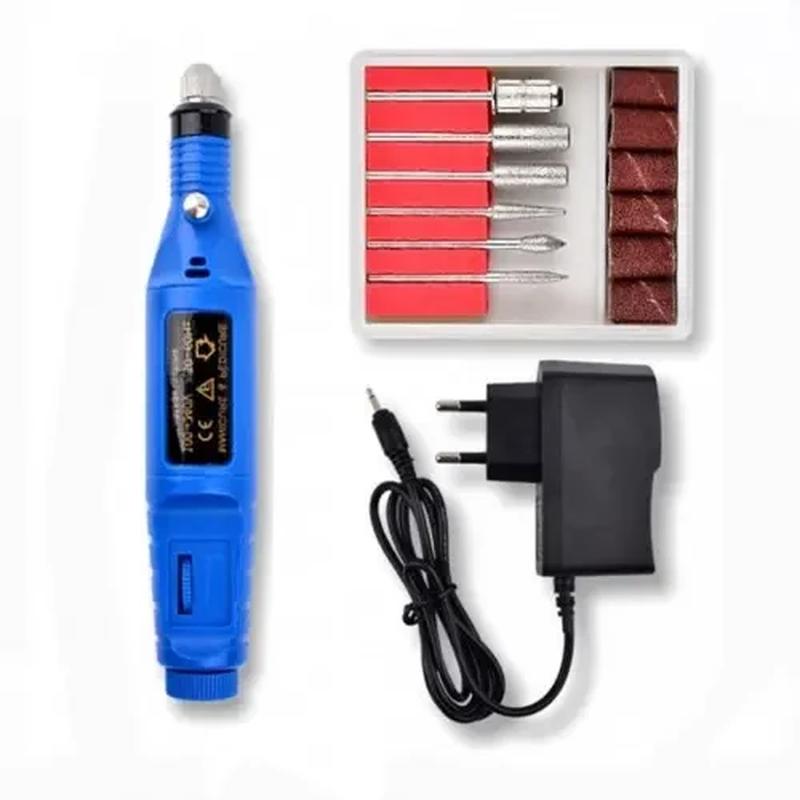 Фрезер для манікюру 13000 обертів Має високу швидкість обертання 13000 обертів на хвилину. Плавне регулювання оборотів: Плавне регулювання оборотів, Плавне регулювання оборотів, кріплення за допомогою затискного кільця. Характеристики: Потужність: 10 Вт . Напруга з мережі: 220 В, ― 50 Гц. Особливості: 100% Професійний електричний фрезер для нігтів (6 насадок для манікюру). Регулювання швидкості: від 3000 RPM до 20000 оборотів в хвилину. Насадки можуть бути використані як для натуральних, так і для штучних нігтів. Використовується для: гравіювання, заточування, шліфування, полірування, свердління. У набір входить: ― ручка-фрезер; -адаптер; -6 насадок, які використовуються в апаратному манікюрі та педикюрі. 2 насадки циліндричної форми -для обробки краю нігтя, шліфування, видалення мозолів та огрубілої шкіри, корекції штучних нігтів . 3 насадки конічної форми ― для легкого та швидкого видалення кутикули, шліфування натуральних нігтів, чищення під нігтями (насадка у формі вузького конуса) та фінішного шліфування. 1 насадка з 6 змінними наждачними змінними наконечниками.