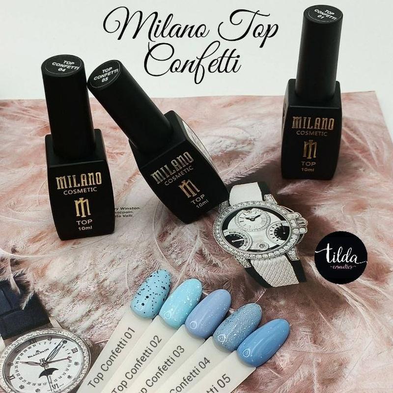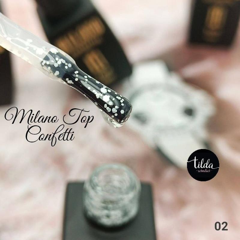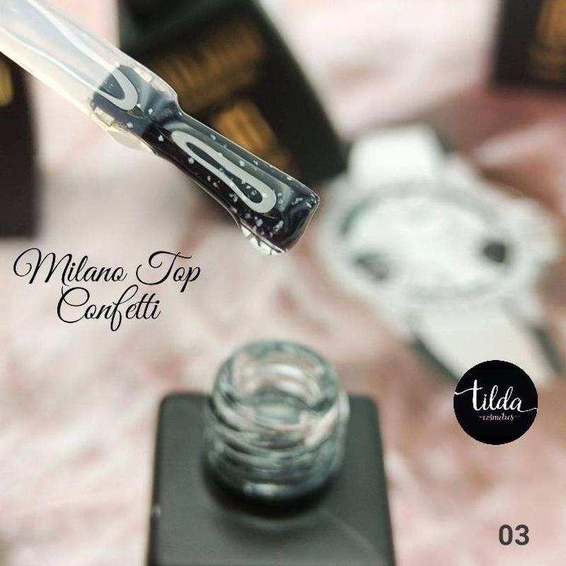 Покрытие с этим топом будут рассматривать все, ведь он состоит из декора белых и черных частиц различных размеров и форм. Подходит как для светлых так и темных оттенков гель-лака. С этим топом можно обновить свой любимый цвет, и он будет выглядеть еще необычнее. Топ без липкого слоя.