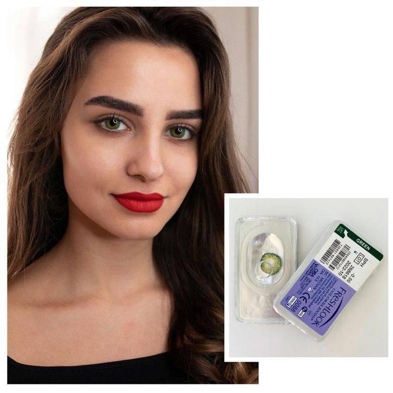 * Комфортні якісні лінзи Fresh Look, натуральні зелене * Повітропроникні, не сушать оченята * Термін носіння - 6 місяців * Діаметр - 14,5 * Оптична сила - 0 * Кислородопроницаемость - 21,6 Dk/t * Вологовміст - 55 * Товщина в центрі - 0,08 * Тип матеріалу - гідрогель * Вага упаковки - 16,3 гр * Доставка по Україні 2 дні * Доставка по світу 12-14 днів