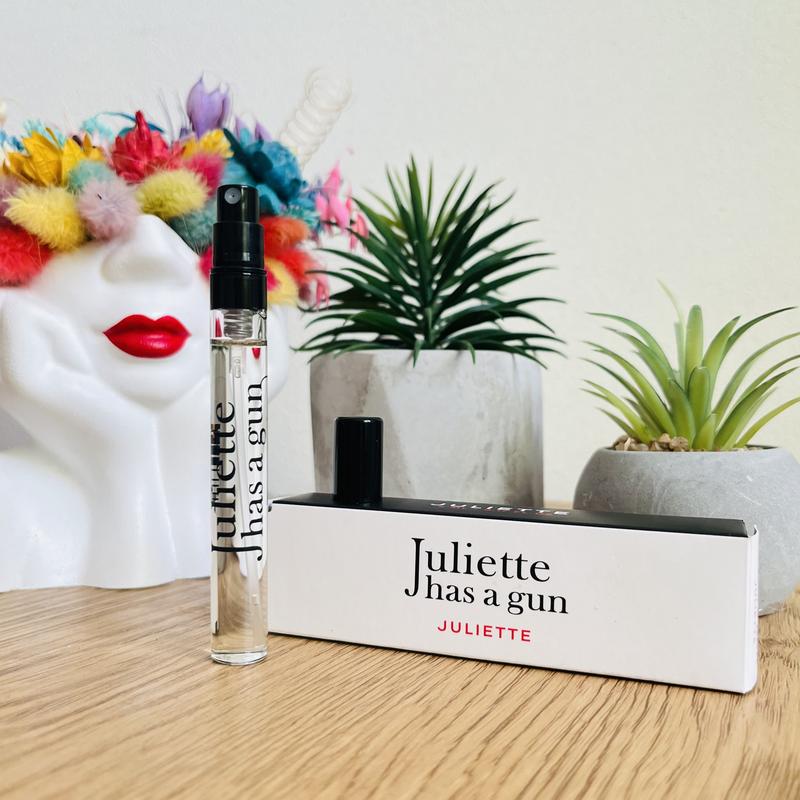 Juliette від Juliette, juliette has a gun, миниатюра - це парфум для жінок, належить до групи ароматів Квіткові Фруктові. Це новий аромат. Juliette був випущений в 2024. Верхні ноти: Вишня і Рожевий Перець; нота серця: Жасмин; ноти бази: Cashmeran і Боби Тонка.