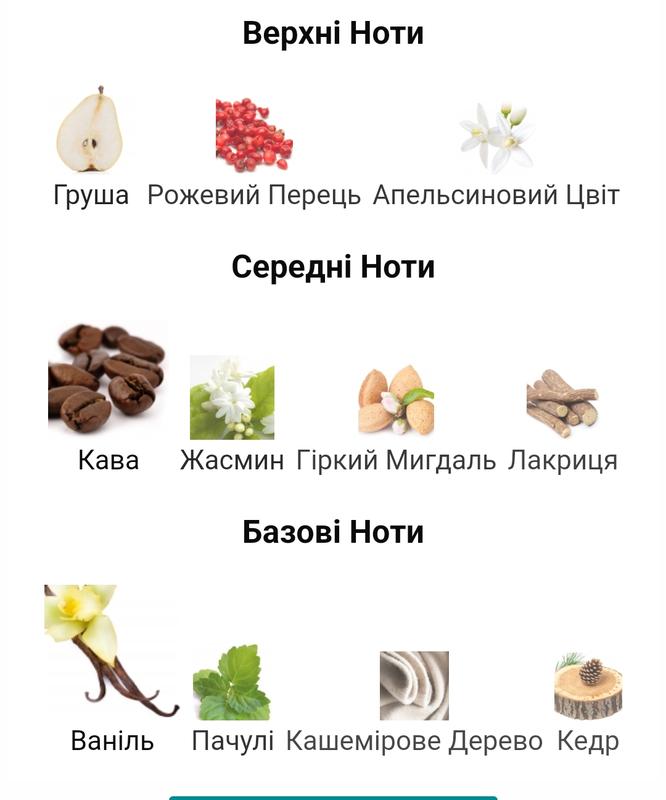 Кінцева нота: Ваніль, Кедр, Пачулі