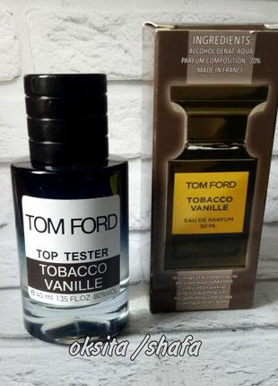 Парфумована вода Tobacco Vanille відноситься до сімейства пряних східних ароматів. Композиція розкривається терпким звучанням листків тютюну в оточенні запашних східних спецій. У серці парфуму букет наповнюється ніжною насолодою ванілі і бобів тонка. Тютюновий шлейф набуває солодкувато-пряний запах квітів тютюну і какао. Завершальний акорд складений з благородних деревних нот і аромату сухофруктів, які обволікають теплом і дарують відчуття комфорту і затишку. Стать: унісекс Тип аромату: східні, пряні Класифікація: елітна Початкова нота: Листя тютюну, Спеції Нота серця: Боби тонка, Ваніль, Какао, Квітка тютюну Кінцева нота: Деревні ноти, Сухофрукти