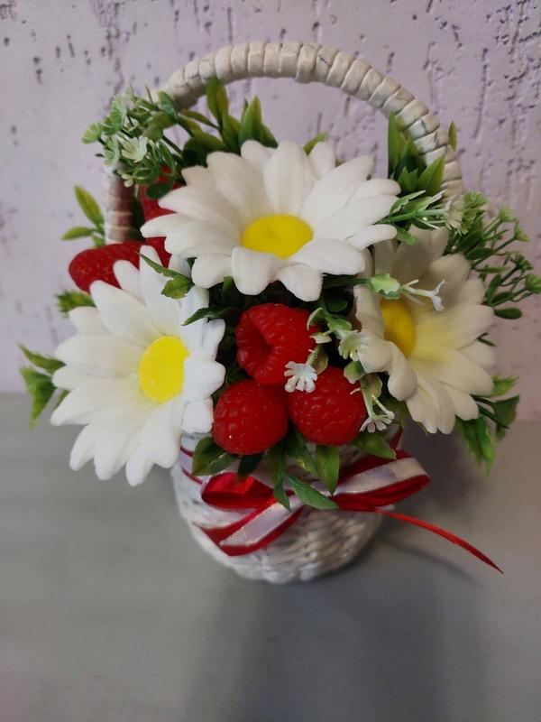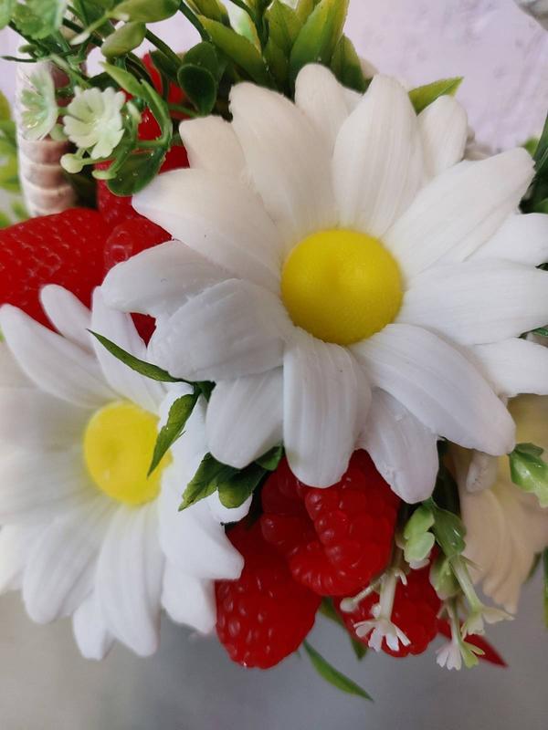 Ароматний букет мильних ромашок із ягодками подарує свято близькій людині!