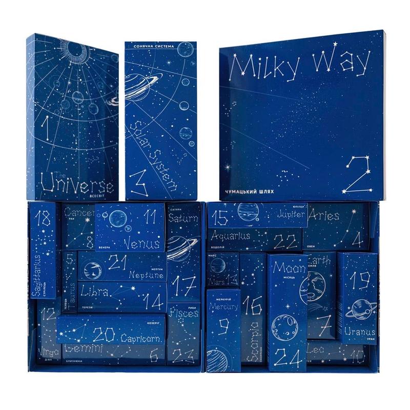 Адвент календар Cosmogram робить кожен новий день космічно красивим. Цьогоріч ми пропонуємо познайомитися з нашими найкращими продуктами для обличчя, тіла і волосся, 17 із них виключно ексклюзивні! Більшість засобів повнорозмірні, оскільки ми хочемо, щоб радість від них тривала якомога довше! Захопися красою нашого світу разом з Mr.SCRUBBER.