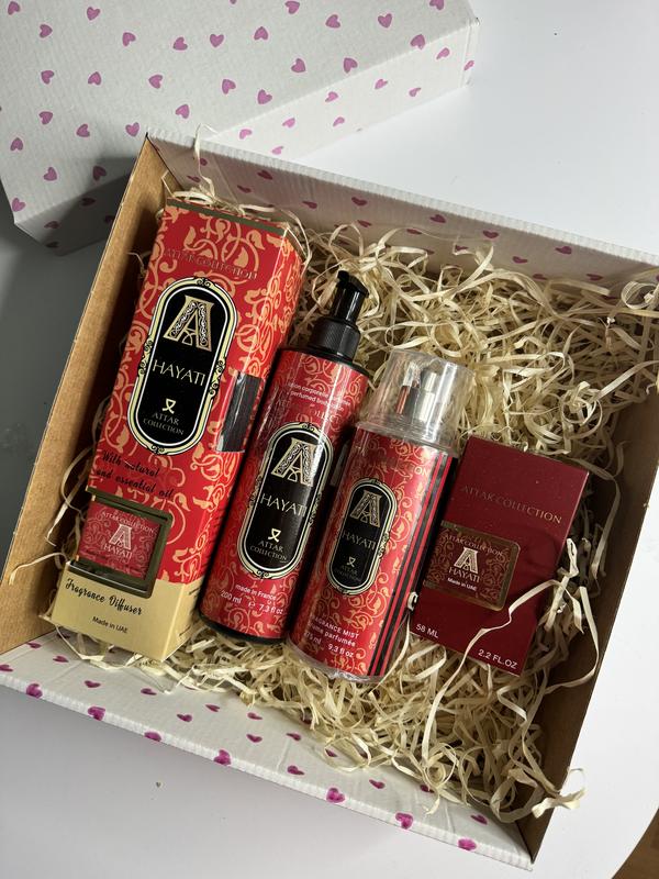 Подарунковий набір hayati 🍓🍍🍧 Аромат 58мл Спрей для тіла 275мл Лосьон для тіла 200мл Аромодифузор