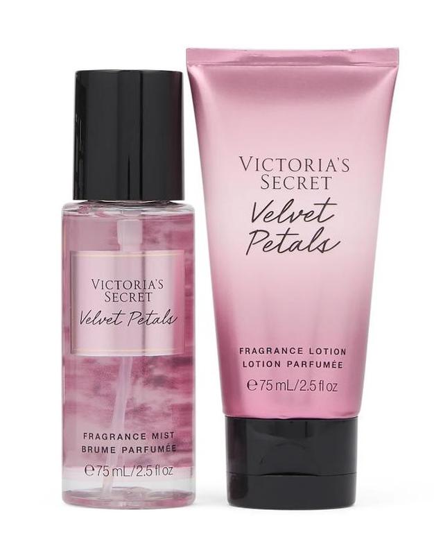 Подарунковий набір Victoria's Secret Velvet Petals Склад набору: парфумований спрей 75 мл + парфумований лосьйон 75 мл Тип аромату: солодкий-фруктовий Нотки: мигдальна гларузь і квіти