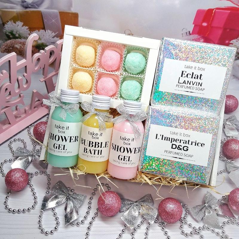 В набір входить: 1. Цукровий скраб для тіла з ароматом дині/ківі/малини (наша ручна робота) 2. Парфюмоване мило "L'Imperatrice" D&G (наша ручна робота) 3. Парфюмоване мило "Eclat" Lanvin (наша ручна робота) 4. Гель для душу з ароматом малини 175мл (Україна) 5. Гель для душу з ароматом кокосу і ківі 175мл (Україна) 6 Піна для ванни з ароматом банану 175мл (Україна) 7. Подарункова коробка з наповнювачем і стрічкою У нашому інтернет магазині великий асортимент унікальних подарункових боксів ручної роботи - Оригінальні і корисні подарунки - Корпоративні подарунки - Подарункові бокси на День Народження - Бокси для чоловіків - Новорічні бокси - Секретний Санта - Бокси до дня Св. Валентина - Бокси на 8 березня - Індивідуальні подарункові бокси - Широкий асортимент - Приємні ціни - Індивідуальний підхід до кожного клієнта, врахуємо всі ваші побажання - Збір і відправка в найкоротший термін - Доставка по всій території України ( Нова Пошта, УкрПошта)