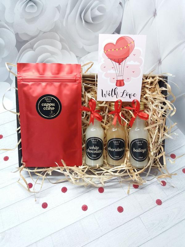 1. Капучіно 50г 2. Сироп "White chocolate" 50ml 3. Сироп "sheridan's" 50ml 4. Сироп "bailey's" 50ml 5. Листівка 6. Подарункова коробка з наповнювачем та стрічкою У нашому інтернет магазині великий асортимент унікальних подарункових боксів ручної роботи - Оригінальні і корисні подарунки - Пайові подарунки - Подарункові бокси на День Народження - Бокси для чоловіків - Новорічні бокси - Секретний Санта - Бокси до дня Св. Валентина - Бокси на 8 березня - Індивідуальні подарункові бокси - Широкий асортимент - Приємні ціни - Індивідуальний підхід до кожного клієнта, врахуємо всі ваші побажання - Доставка по всій території України ( Нова Пошта, УкрПошта, Justin)