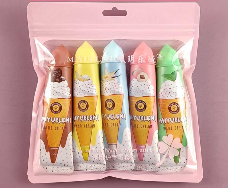 До набори входить 5 кремів по 30 г з різними ароматами. Зволожувальний крем для рук . Крем для рук - засіб, що дозволяє надовго зберегти молодість рук, зволожити шкіру і запобігти передчасному старінню. Використовуючи крем для рук, ви зможете позбутися від лущення і роздратування шкіри. Засіб має приємний аромат, що надає відчуття свіжості, а легка текстура дозволяє нанести засіб в лічені хвилини. Крем має в складі різні екстракти і масла Регулярне застосування крему дозволяє запобігти старінню шкіри та її в'янення. Застосування крему дозволяє мінімізувати пігментацію, захистити від ультрафіолетового випромінювання. Аромат засобу подарує настрій на цілий день. Спосіб застосування: На суху і очищену шкіру рук нанесіть невелику кількість крему, рівномірно розподіліть його. Не залишає жирної або липкою плівки, так як має легку текстуру і моментально усмоктується.