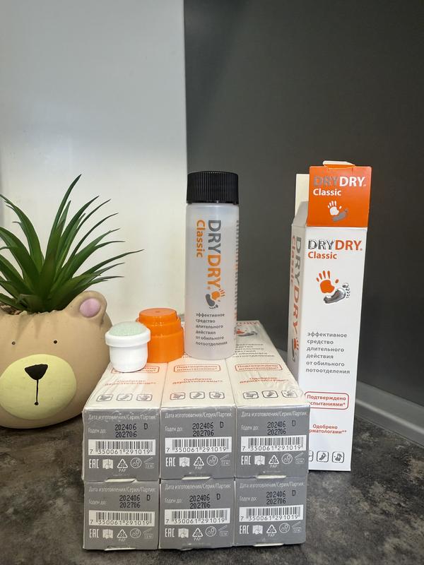 В наявності DryDry classic Швеція. В наявності оригінальний DRY DRY Historic. Виробник: Швеці: Lexima AB Sweden Антіпреспірант від надмірного потовиділення DRYDRY classic. Тривалість дії після використання 7 -14 днів. Підходить як для чоловіків так і для жінок. Однієї пляшечки вистачає від 6 до 12 місяців. DRYDRY classic поставляється в упаковці з посрібленою стопою, датою виготовлення, детальним складом та терміном дії на упаковці! Строк до 06.2027р. Не плутайте з підробкою dry dry late без строку придатності!