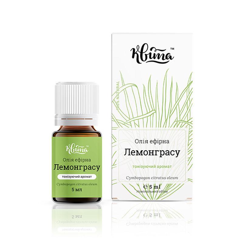 Родина: злакових Метод одержання: дистиляції с апром із зеленої частини рослини Клас: тонізуючий аромат, афродизіак Показання: - варикозне розширення вен; - догляд за жирною та пористою шкірою; - гіпотонія; - насморк, гайморит; - приготування масажного масла для спортсменів; - укріплює стінки судин; - знезараження повітря в приміщенні; - м'язові болі, коліт, гастроентерит; - целюліт; - статева холодність; - укуси комах. Застосування: ефірна олія лемонграсу використовується як у чистому вигляді, так і в композиції з іншими ефірними оліями-комплементарними ароматами (апельсина, імбиру, жасмину, розового дерева, мирта, фенхеля, ладана, сандала) Протипоказання: не застосовувати при вагітності, не наносити на чутливу шкіру. Індивідуальне несприйняття. Відчуття: при нанесенні на шкіру - горіння, печіння, сухість протягом 2-4 хвилин. Реакція природна.