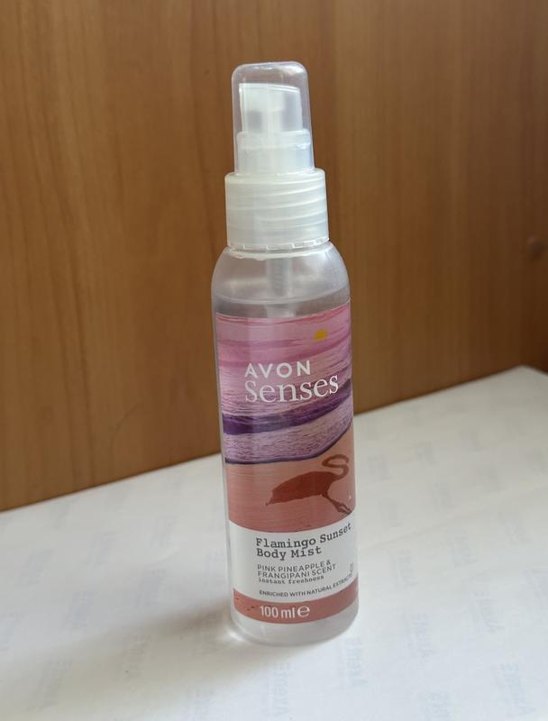 Освіжаючий лосьйон-спрей для тіла «Фламінговий захід» – це приємний спрей, який миттєво освіжить шкіру ароматом рожевого ананаса та квітки франжіпані. Ноти аромату: рожевий ананас, квітка франжіпані Ароматний спрей для тіла «Фламінговий захід» – це чудовий аромат у вигляді легкого спрею – він тонко ароматизує шкіру та приємно освіжає її. Як використовувати спрей для тіла Avon ? Розпиліть туман на відстані 15 см від шкіри. Обєм: 100 мл